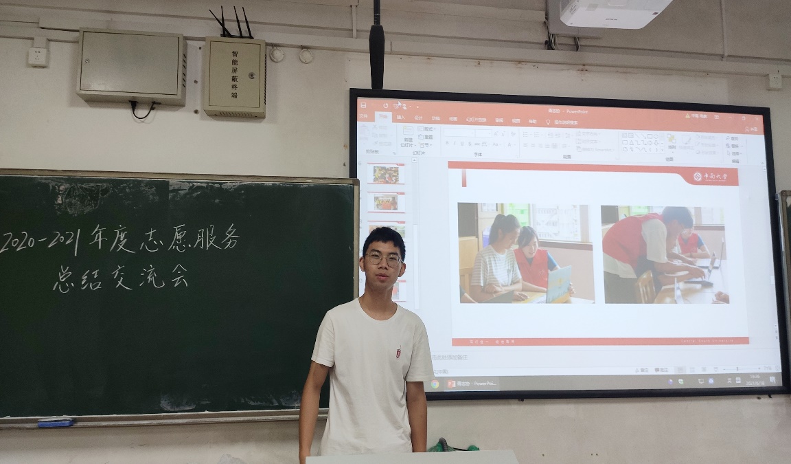 随后,志愿者代表、青志协张圣楠发表感想,分享志愿服务经验。他表示,参加志愿服务能带来不同的体验与收获,认识许多志同道合的人。他希望以后能继续参加志愿服务,服务他人,升华自我。