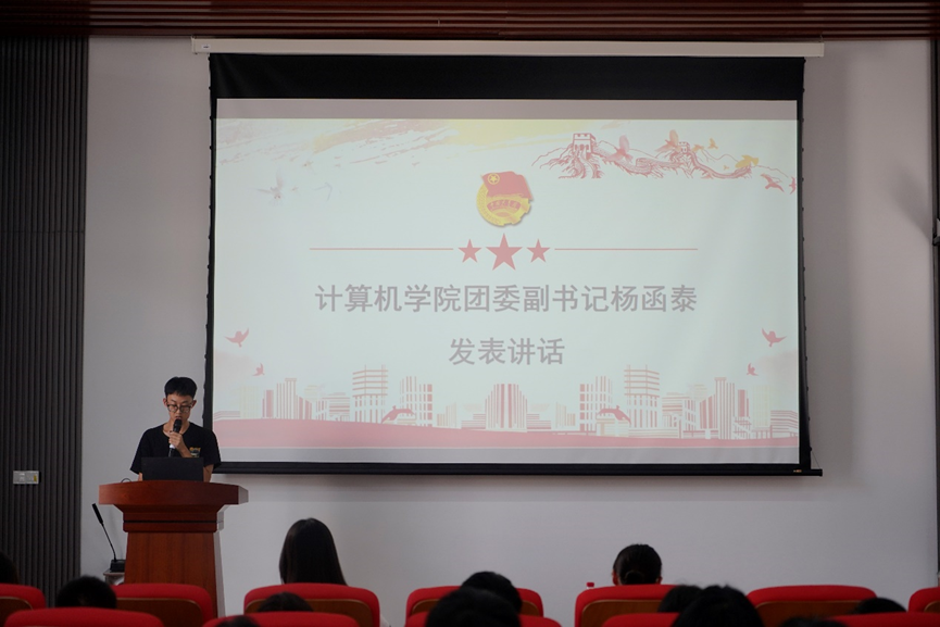 奏唱完毕,伟德国际VICTOR1946团委副书记杨函泰介绍了此次召开大会的目的,强调不断提高团支部书记的能力是团支部蓬勃发展的关键,同时对新任团支书提出了自己的希冀:认真学习共青团知识,尽早熟悉团支书工作,为更好服务同学、建设团支部做出贡献。并在最后就“九·一八”事变向全体成员呼吁:作为共青团员,我们要时刻牢记落后就要挨打的教训,时刻牢记“坚定不移跟党走,为党和人民奋斗”的初心和使命,在新的历史征程上播撒青春,建立功勋!
