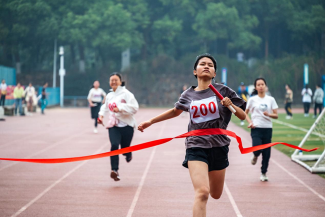 其余径赛和田赛在下午举行,“硝烟”的味道弥漫在跑道沙坑间。跑道上的参赛者若两脚生风直奔终点,矫健的身姿是青春与活力的映现;沙坑前的运动员如离弦之箭划过空中,优美的弧线是勤奋与刻苦的证明。他们在赛场上竭尽全力、奋勇拼搏,展现了朝气蓬勃的青春风采。
