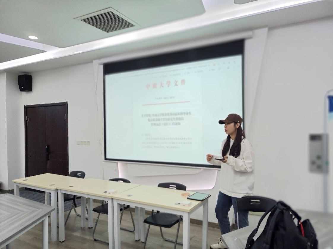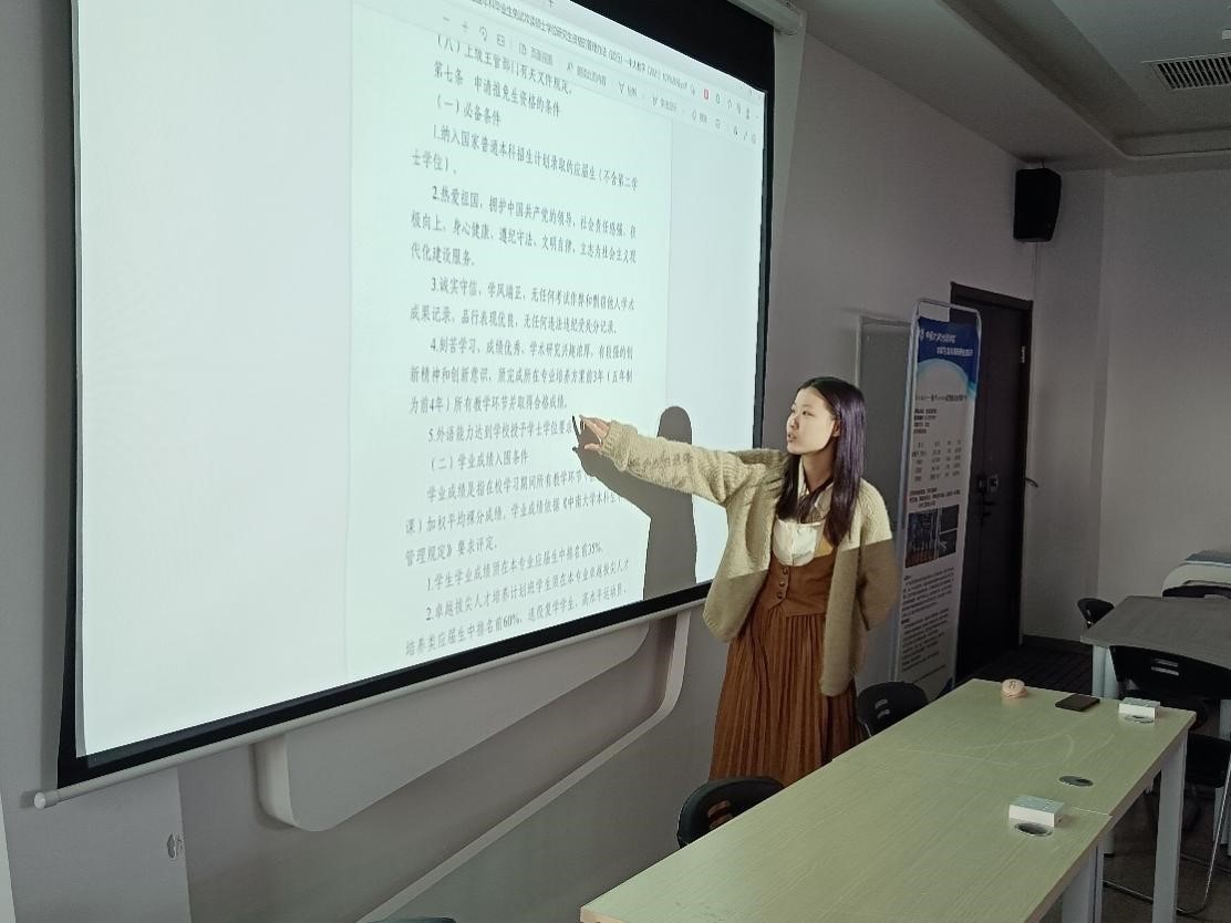 而后,科协主席侯雅淋从保研细节出发,围绕本科生培养方案、科研论文的注意事项、预推免的材料准备、个人简历的阶段性打磨等分享了自己的保研经验。她鼓励在场同学:“强化认知,着眼可落地的构想,同时要敢于、擅于将自身价值加以展现。”