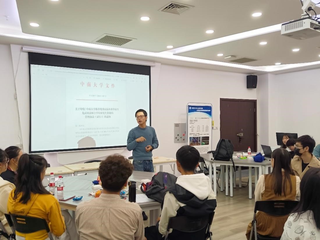 而后,卓世龙学长结合近几年公司保研相关数据,鼓励科协新生对公司未来明朗的保研形势保持信心,并从保研的阶段上分享了保研经验,介绍了高校夏令营的有关情况,提醒在场同学们关注预推免平台的开发时间。