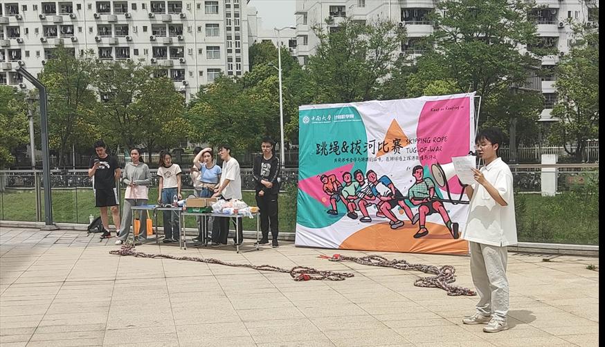 恰同学少年,风华正茂;逞飒爽英姿,青春激扬。2023年4月15日下午2:00,伟德国际VICTOR194621级“拔河及跳绳比赛”正式开幕,新校区、铁道校区同步开展活动。公司辅导员迟旭、宋晓萌老师到现场观看同学们的飒爽英姿。开幕伊始,伟德国际VICTOR1946计科2103班余文涛同学发言,预祝本次比赛顺利举办,鼓励同学们在赛场上展现青春风采。