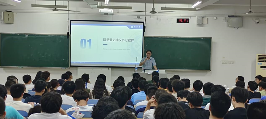 晚上7:30大会正式开始。会议由辅导员何星霖老师主持,何老师首先介绍了与会的领导,并对同学们的到来表示热烈的欢迎。