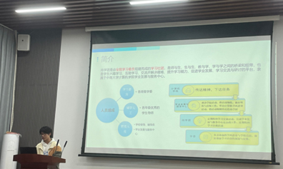 会议开始,宋晓萌老师介绍了学委的工作内容,希望各位学委认真负责,积极开展班级内的学习活动,营造良好学习氛围。同时宋晓萌就学服和公司知新馆开设的辅学课程展开了介绍并鼓励同学们积极参与。