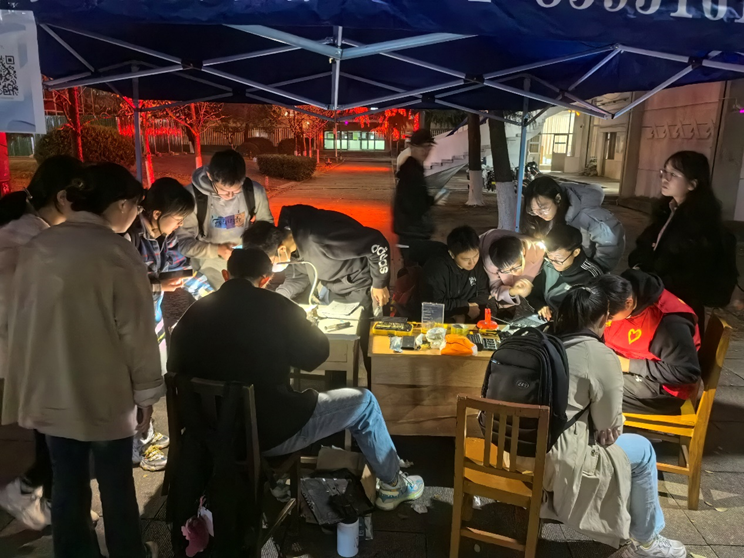 从上午支起帐篷摆好桌子,到华灯初上活动结束,一整天的活动中累计为计算机、电子信息、土木、交通、公管、建艺等各个公司五十余名同学解决电脑手机问题。