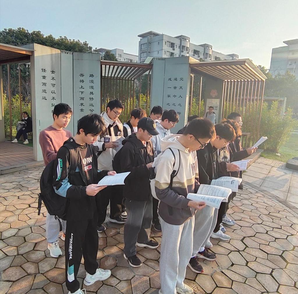 运动结束后,同学们带着饱满的热情,前往问渠长廊,开始了问渠晨读。在清新的晨风中,他们手持书本,昂首挺胸,一字一句地朗读着,声音洪亮而有力。每个人的脸上都洋溢着专注与认真,他们在朗读中体会文字的魅力,感悟知识的力量。长廊上回荡着同学们的读书声,与清晨的鸟鸣交织在一起,构成了一幅和谐美好的画面。