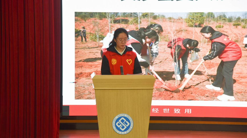 院青年志愿者协会负责人陈果对“雷锋月”活动作工作报告,介绍了义务植树助环保、公益捐赠念儿童、湘江净滩美环境、慧灵助残播爱心、敬老活动送温暖等系列活动,陈果同学以切实的数据、直观的活动照片、生动形象的解说,详细展现了志愿者甘于奉献的服务态度,以及青志协脚踏实地的工作决心。