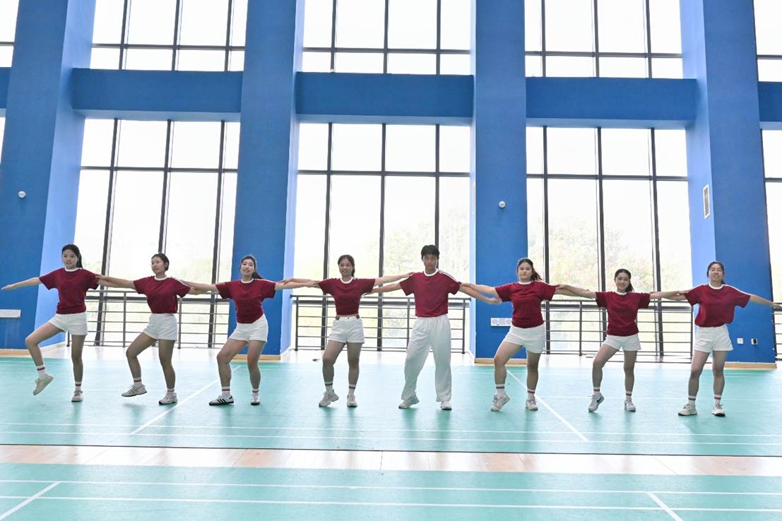接下来是健美操比赛,选手们齐步入场,精神利落,伴着一声声动令,选手们的动作刚柔并济,时而如狂风中的劲竹,挺拔有力,时而如春日里的柳枝,婀娜多姿,一招一式都闪耀着自信的光芒,一动一息都展现着体育的魅力。