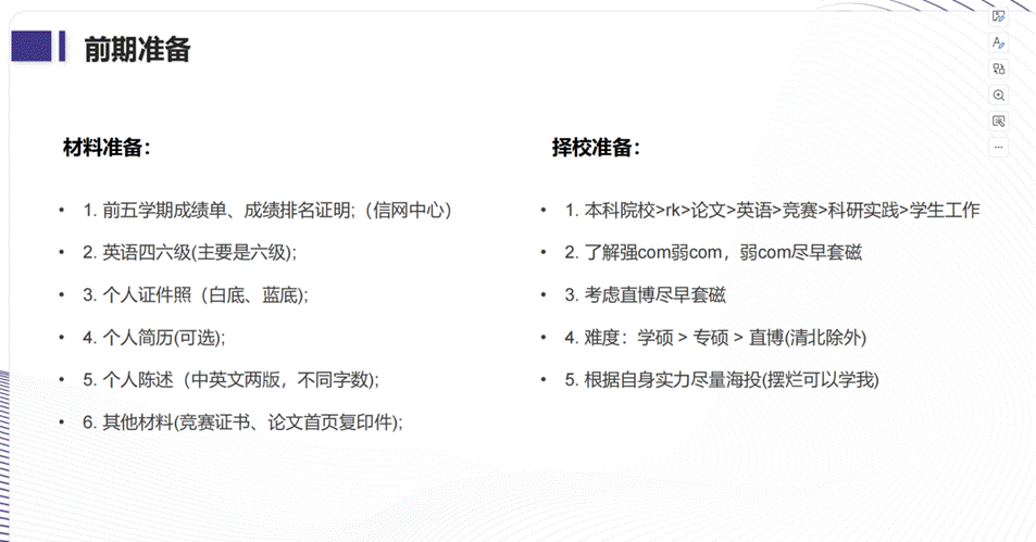 最后,来自软件工程专业的李超钒学长围绕申请信件、保研准备和面试内容几个方面展开,带领大家深入了解各个环节,交流了许多实用的经验技巧。他通过幽默的口吻和细致的解说,勉励同学们积极提升自我,减轻自身的压力和焦虑,希望同学们敢于有梦,勇于追梦。