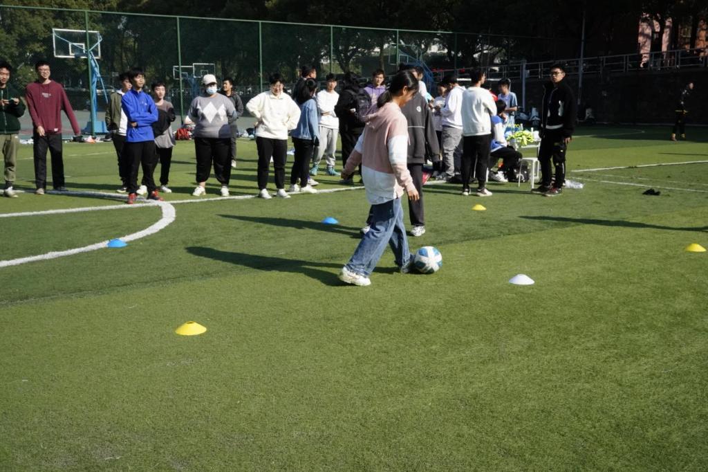 上半场转瞬即逝,转眼到了女生展示的时刻。只见女生们轻快灵动,辗转于障碍物之间,完美地避开了障碍。不过一会的时间,胜负也已决出。娴熟的技巧和充足的耐心被展现得淋漓尽致,足球女将们的飒爽英姿赢得了众多男生的鼓掌欢呼。下半场也紧接着开始了。在20分钟的你追我赶,接力对抗后,一场难解难分的比赛告一段落。双方队员在互致敬意后走下了赛场。