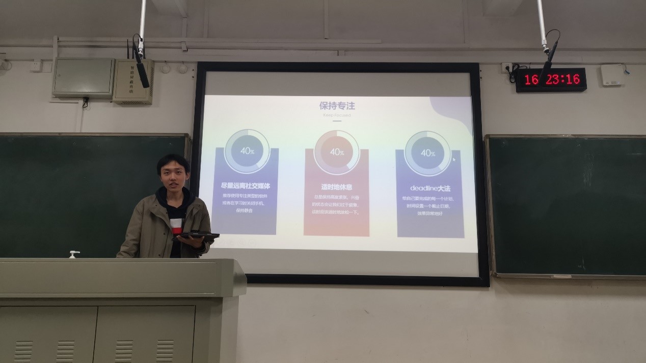 第二位导师是计算机与科学技术专业的赵语林。赵语林学姐从明确定位开始,告诉我们应尽早确定自己的目标,并对仍处在迷茫状态、不知道自己该做什么的同学提出了解决方法。接着,学姐对实现不同目标的路径做了自己的解读。此外,学姐还强调了规律作息以及摆脱拖延症的重要性。