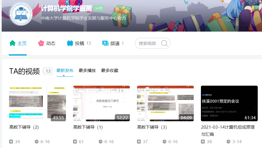 图 4 B站高等数学往年录播课程
