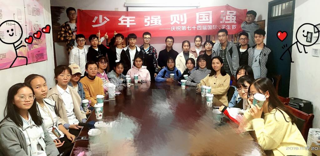 最后,为庆祝计算机1916班第一次班委会顺利召开及第七十四届国际老员工节,班长蔚永正带领同学们集体拍照留念。