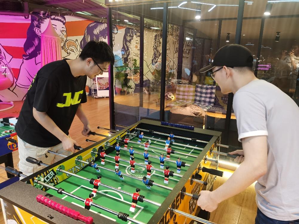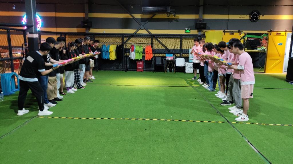 下午两点半,同学们准时到达场地。活动主持人带领我们开始了一下午的活动,此次团建活动通过各种团体游戏项目极大地拉进了所有成员之间的距离,让大家懂得团队合作的重要性,更重要的是收获了欢乐与放松。活动一开始,因为彼此不熟悉大家还有点放不开。为了把气氛带起来,主持人用报数的方法将同学们分为“对对对”和“就是玩儿”两个队,两边确定了各自的队长和口号,并挑选了自己喜欢的队服。