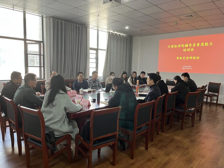 连选老师围绕着《辅导员素质能力大赛提升策略》这一论题讲解了基础知识、案例分析、谈心谈话等多个板块竞赛内容的解题思路。随后,他分享了辅导员技能大赛的经验和心得。他鼓励计算机院的辅导员多多参与到职业技能竞赛中来,以赛促学,以赛促教,不断提升职业技能,实现辅导员职业的高质量发展。