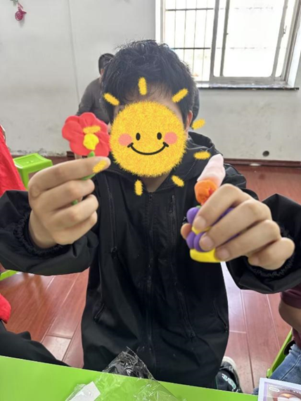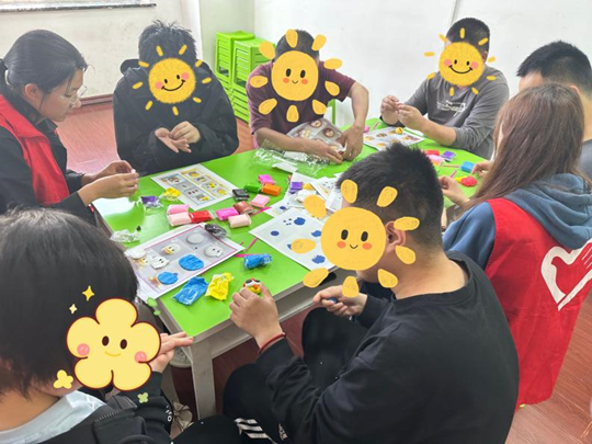 分组完成后,粘土组的志愿者开始分发提前准备好的材料,与学员们开始制作起他们喜爱的粘土模型。玩粘土是一种有趣又有益的活动,它可以锻炼手指力量和灵活度,并且有降低焦虑,稳定情绪的作用。在玩粘土这一活动中,志愿者们就陪伴智力障碍人士进行了亲切的互动,双方感到了快乐和满足。