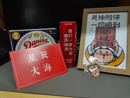 为每一位考研学子用心准备的“加油包”里面有锦鲤钥匙扣,寓意着学子们在考场上能施展所学,如鱼得水;元“汽”满满的可乐,希望学子们乘风破浪,我们一研为定;金榜题名的甜蜜曲奇,蕴含着对未来的美好期许,为考研学子带来满满的能量……小礼物饱含了公司对学子们浓浓的关爱和殷切的期盼,希望同学们在最后的冲刺阶段干劲十足,成功上岸。