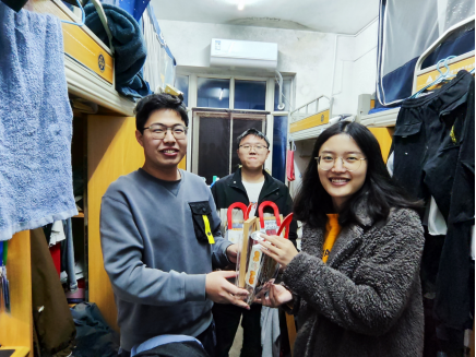 12月3日晚,20级辅导员李梦、周清菡老师以及20级年级会、班长齐聚校本部员工宿舍14舍、15舍,将祝愿全体考研学子金榜题名的“加油包”一个个送到近200名的考研同学手中。句句的叮嘱里寄托着辅导员老师浓浓的关切,小小的“加油包”承载着公司温暖的祝福。